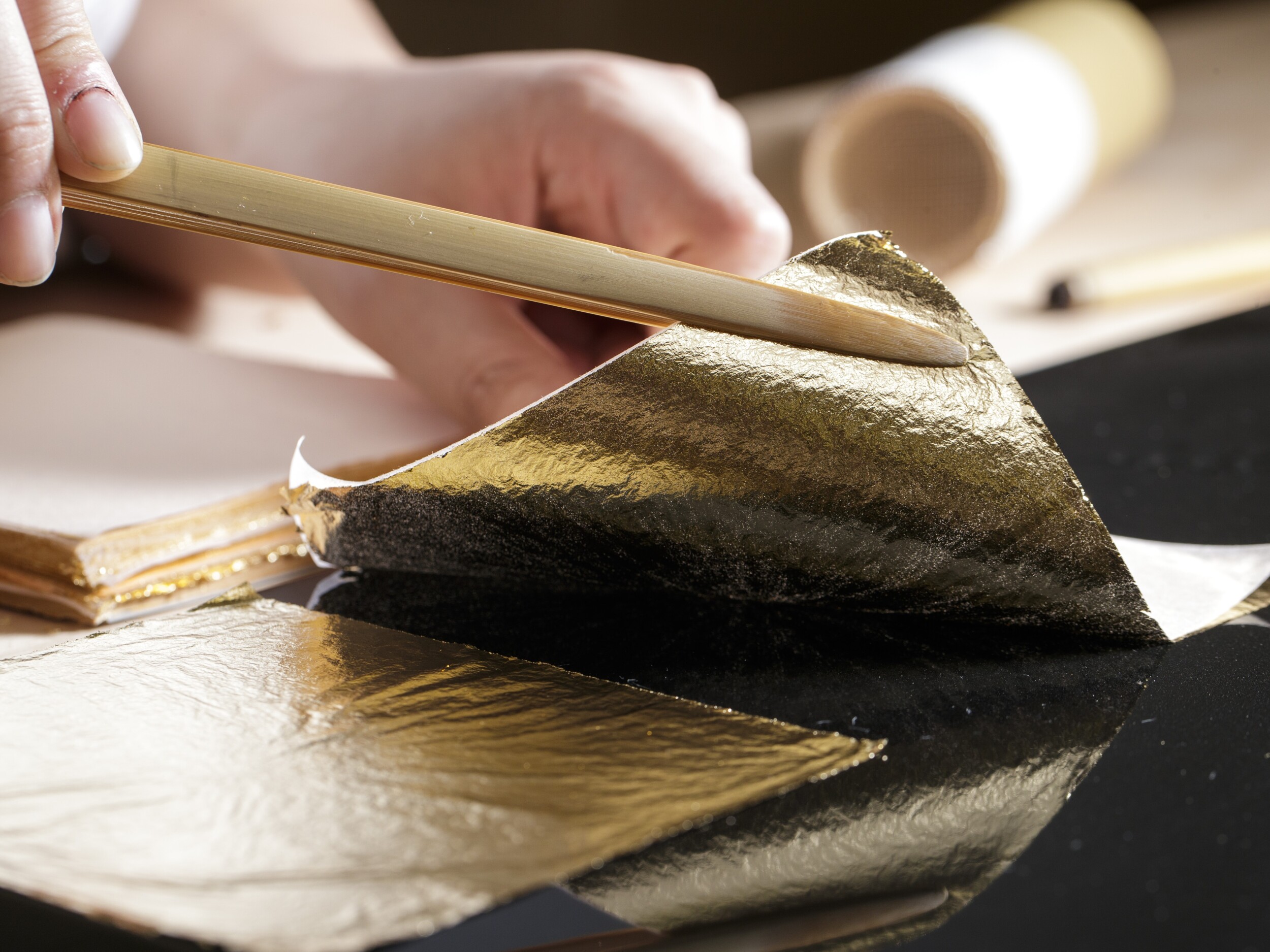 We are able to freely control the thickness and size of gold leaf using traditional techniques passed down from ancient Japan.